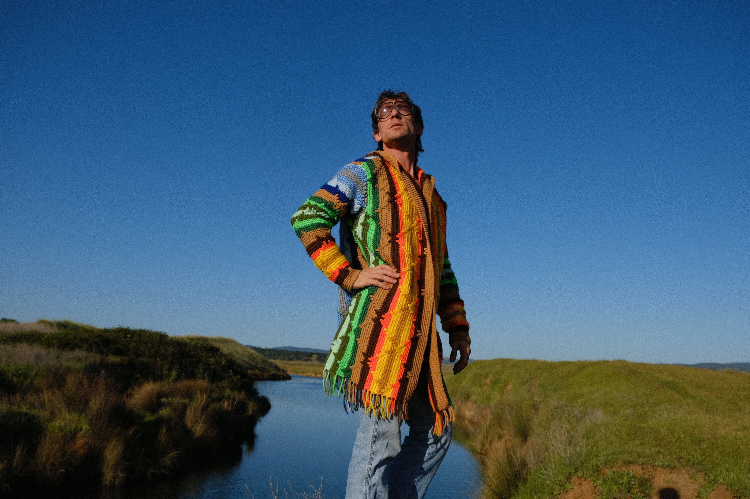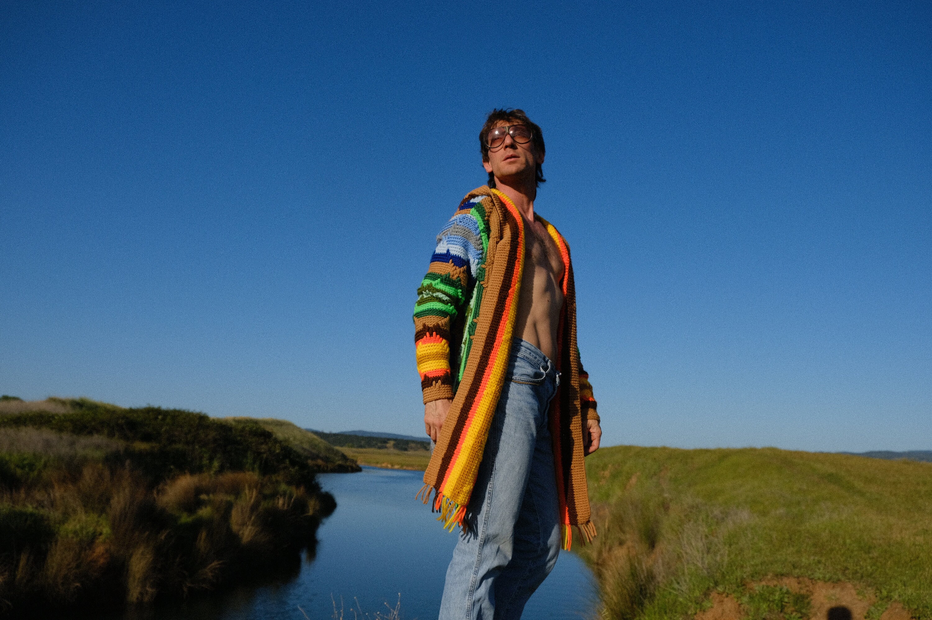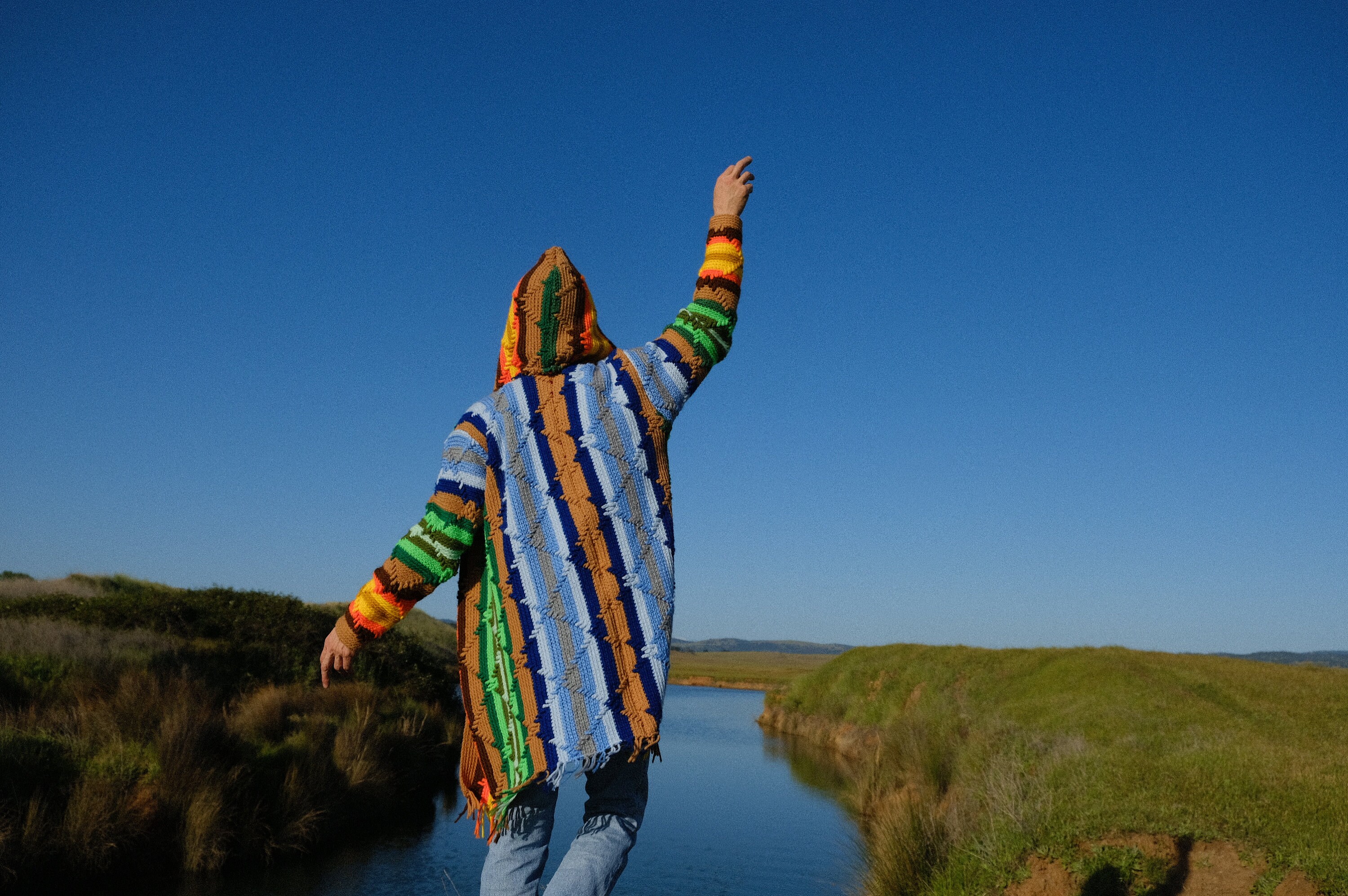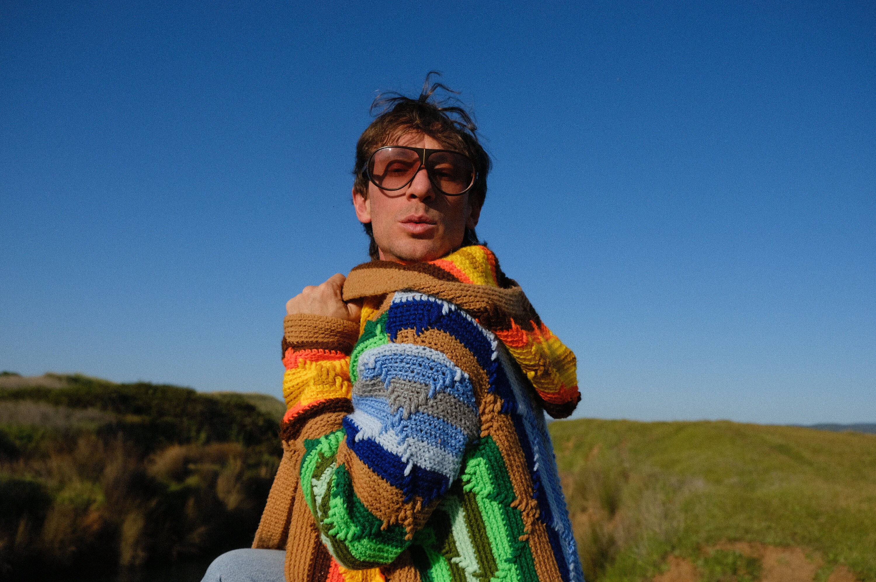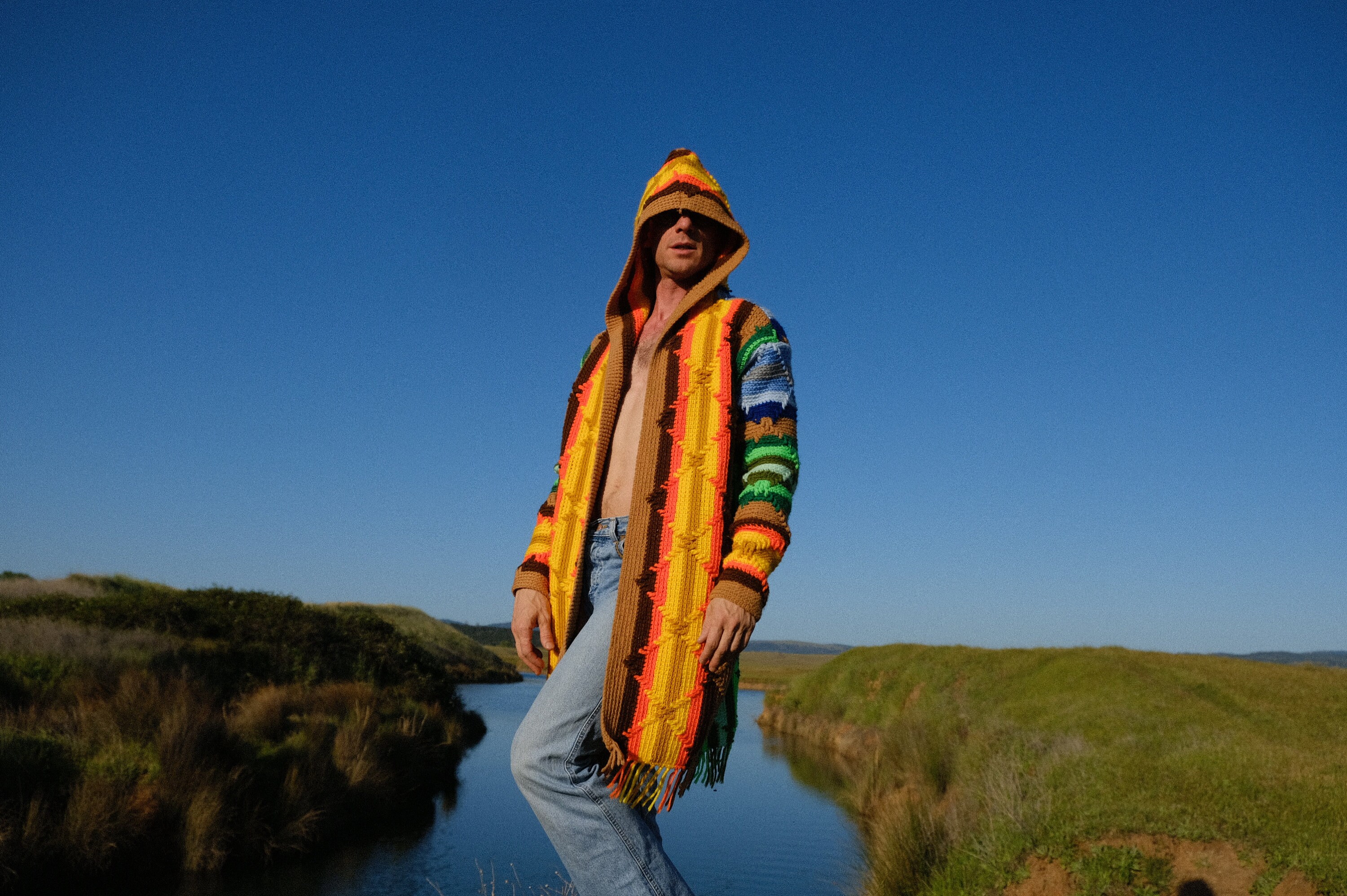 This is a crochet sweater-robe with rainbow stars and tassels at the sleeve. Beautifully up-cycled from an afghan blanket in 100% vintage wool, and hand tailored by yours truly, Lord von Schmitt.