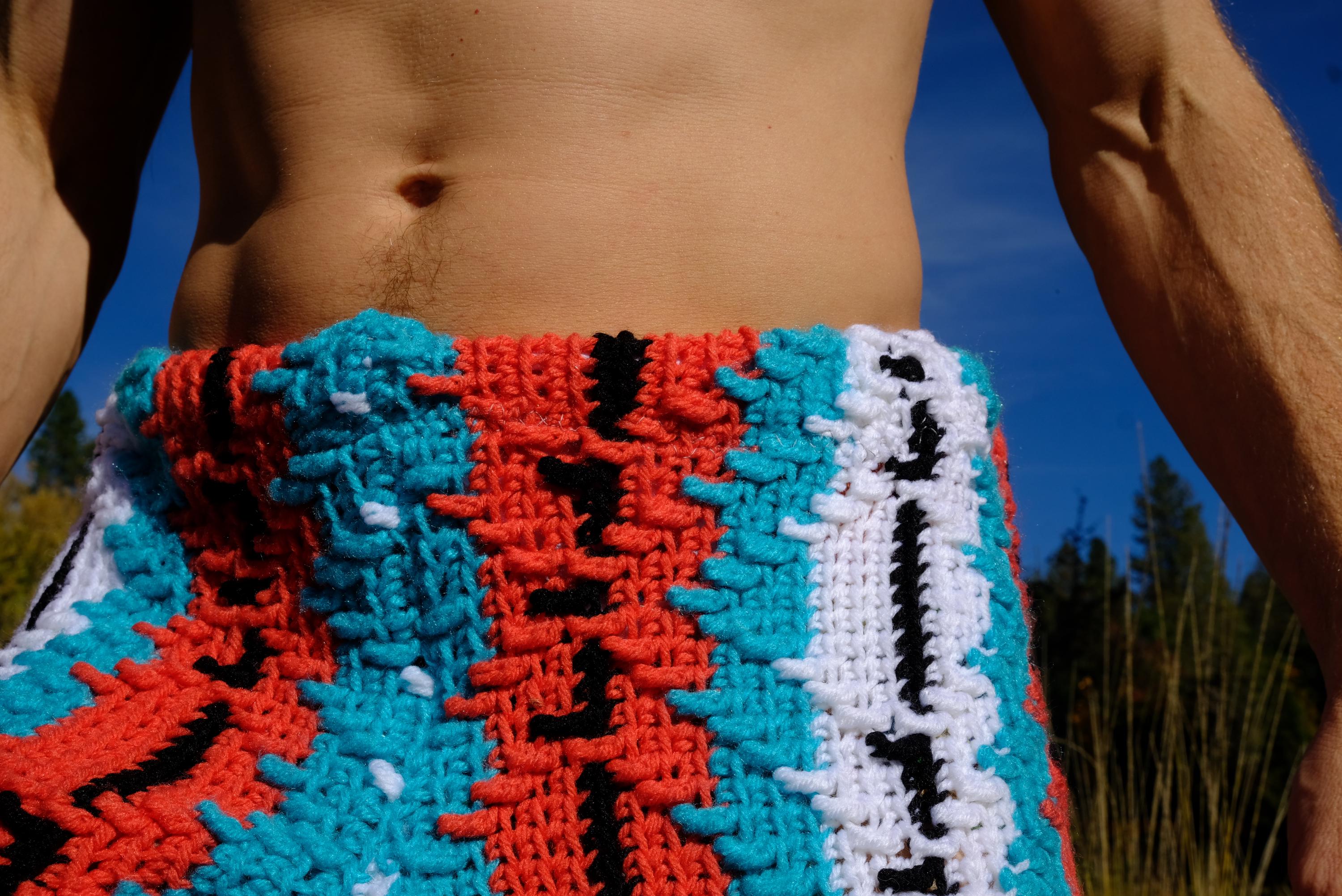 Afghan blankets are heritage textiles infused with color, texture and love. Crochet patterns live in our subconscious minds and are frequently associated , memories and nostalgia. Crochet shorts are stretchy and comfortable, warm yet breathable, eye-catching and vivid. In the words of one satisfied customer, "they might be the best thing we ever owned!!