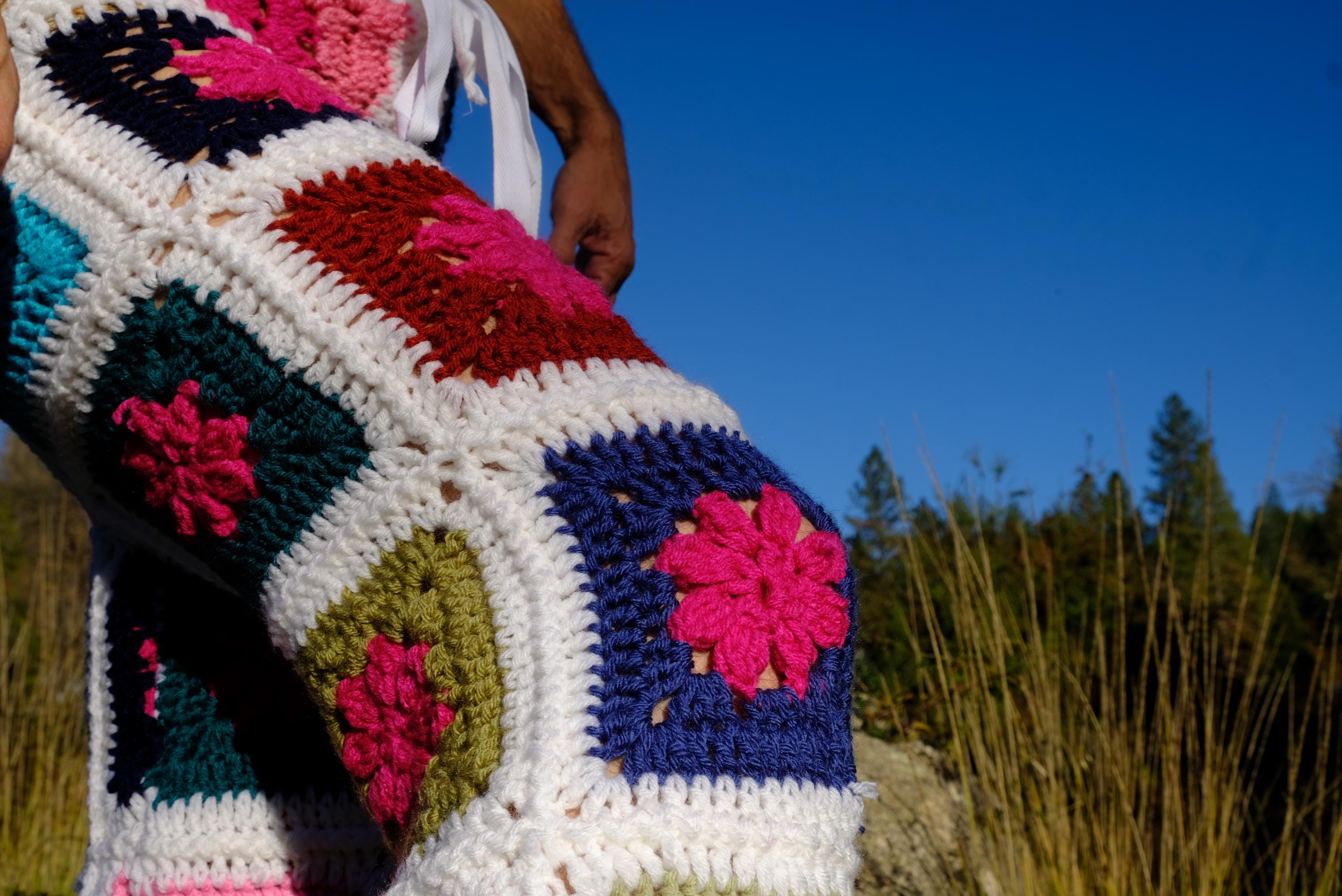 Afghan blankets are heritage textiles infused with color, texture and love. Crochet patterns live in our subconscious minds and are frequently associated , memories and nostalgia. Crochet shorts are stretchy and comfortable, warm yet breathable, eye-catching and vivid. In the words of one satisfied customer, "they might be the best thing we ever owned!!