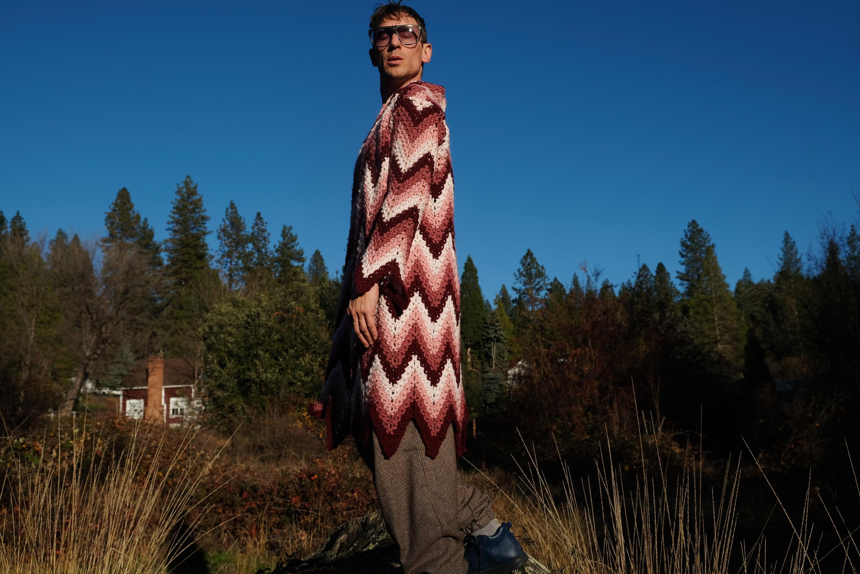 One of a kind, handcrafted item produced 100% in the USA. Designed, tailored photographed and modeled by Schuyler Ellers