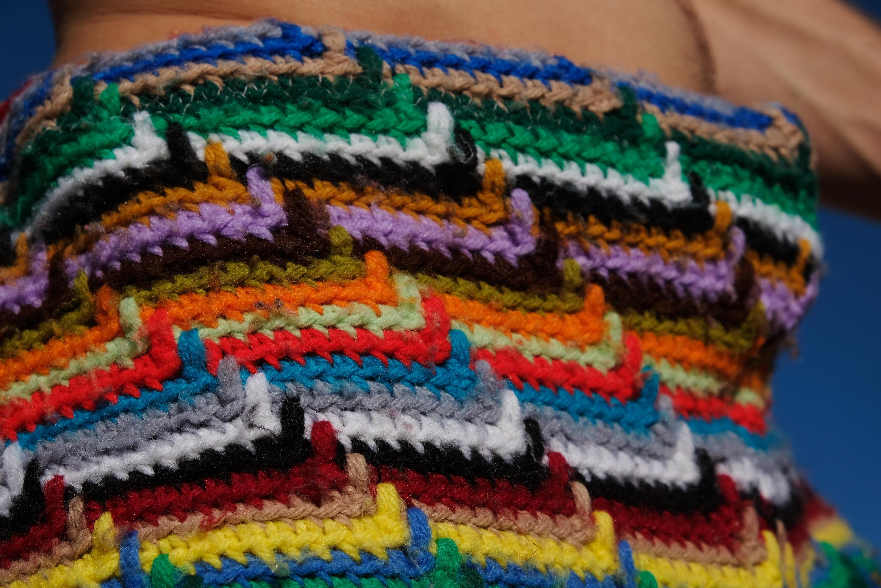 Afghan blankets are heritage textiles infused with color, texture and love. Part of our visual culture, crochet patterns evoke nostalgia, comfort, and warmth. Crochet pants are stretchy and comfortable, warm yet breathable, eye-catching and vivid. In the words of one satisfied customer, "they might be the best thing we ever owned!!