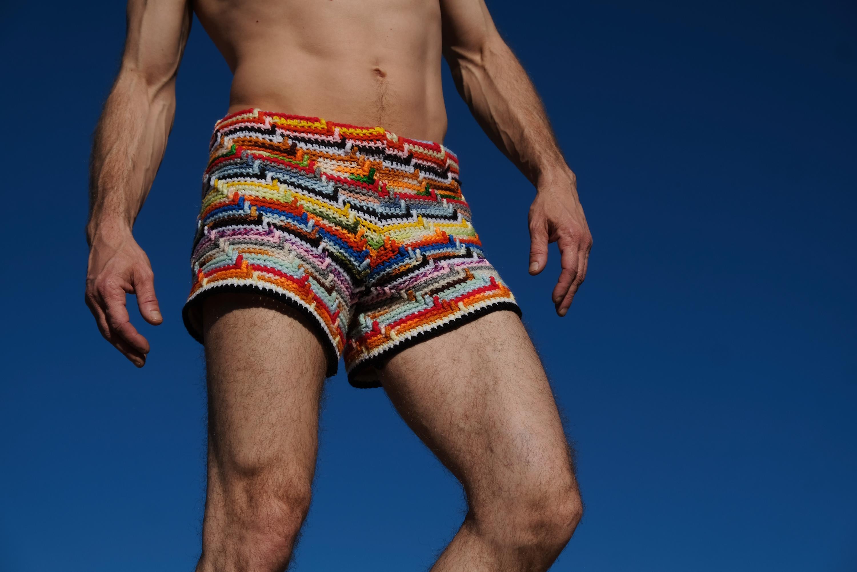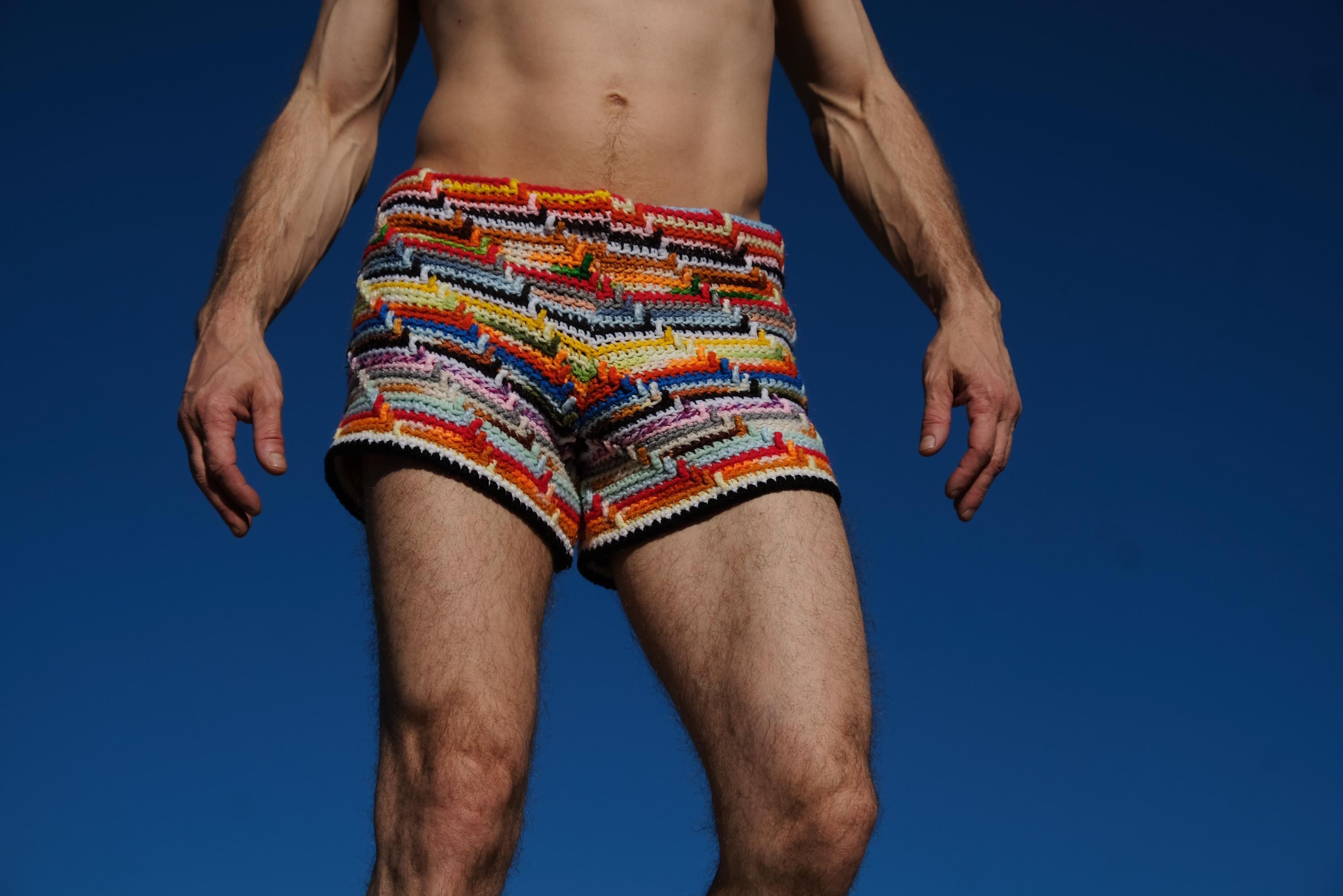 Crochet Board Shorts Rainbow Stripe S