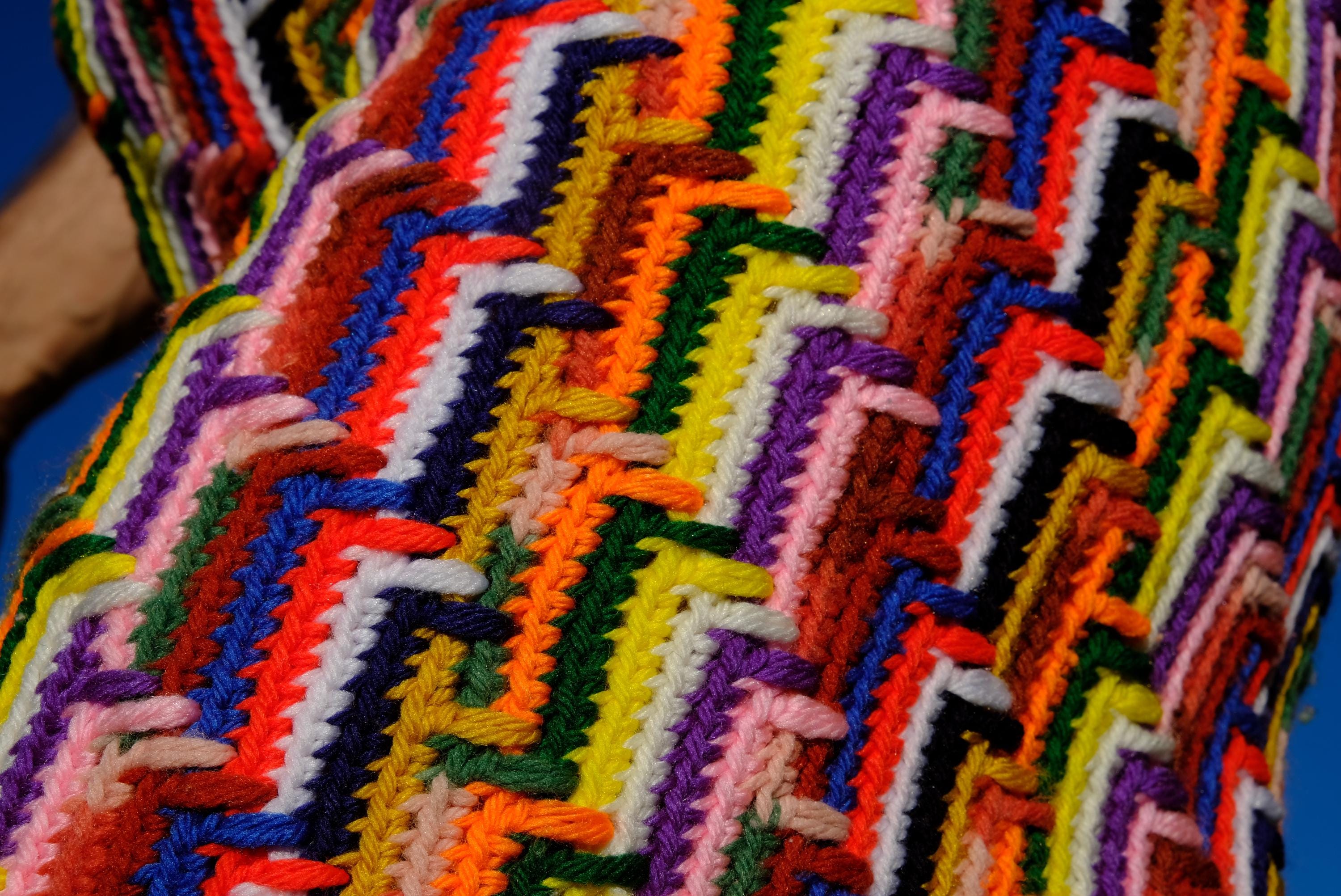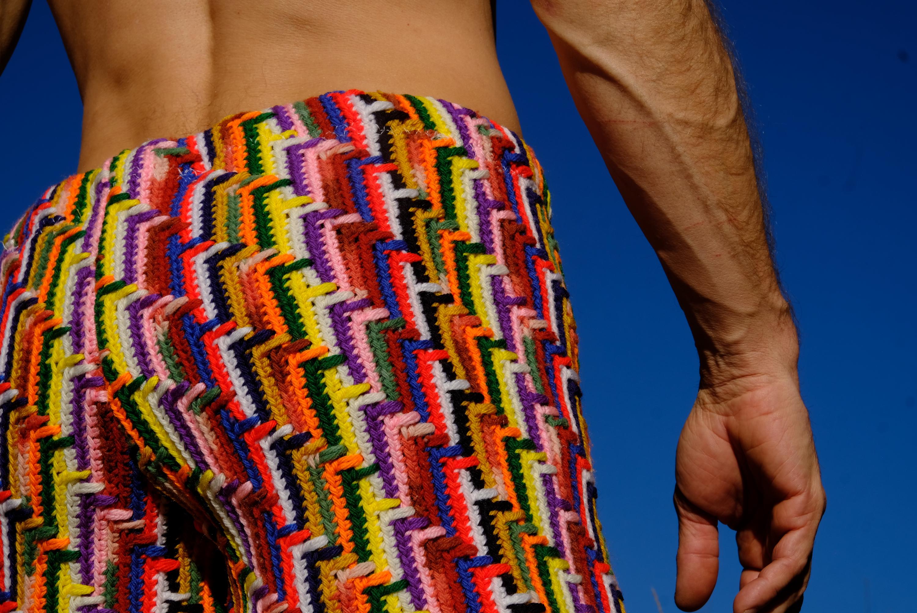 Afghan blankets are heritage textiles infused with color, texture and love. Part of our visual culture, crochet patterns evoke nostalgia, comfort, and warmth. Crochet pants are stretchy and comfortable, warm yet breathable, eye-catching and vivid. In the words of one satisfied customer, "they might be the best thing we ever owned!!