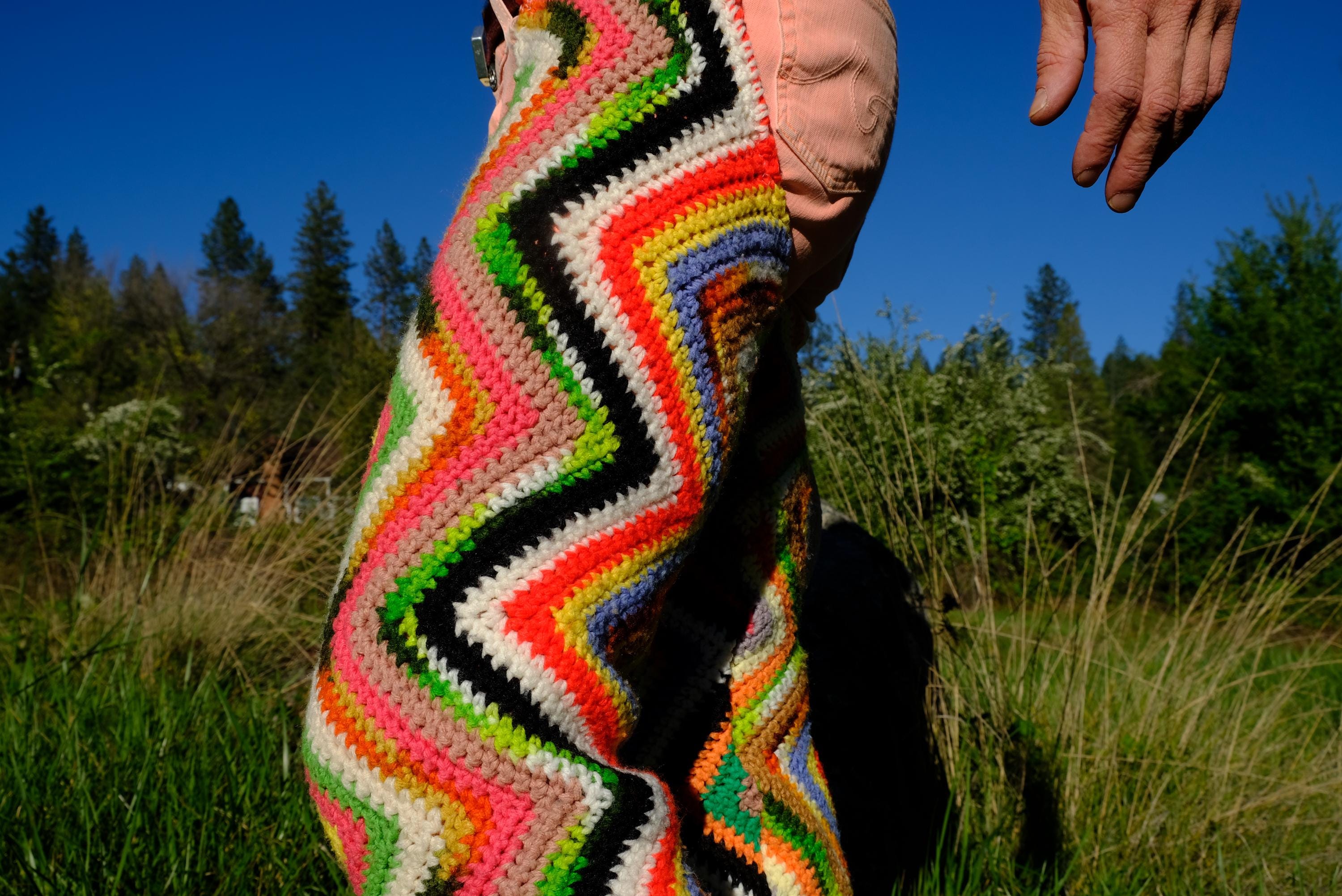 Afghan blankets are heritage textiles infused with color, texture and love. Crochet patterns live in our subconscious minds and are frequently associated , memories and nostalgia. Crochet shorts are stretchy and comfortable, warm yet breathable, eye-catching and vivid. In the words of one satisfied customer, "they might be the best thing we ever owned!!